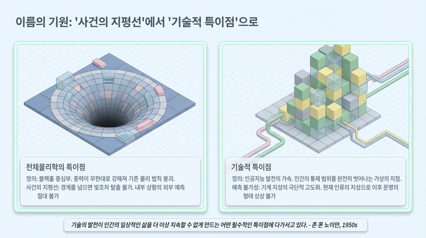 ‘특이점’이라는 단어는 원래 우주를 연구하는 천체물리학에서 온 용어입니다.