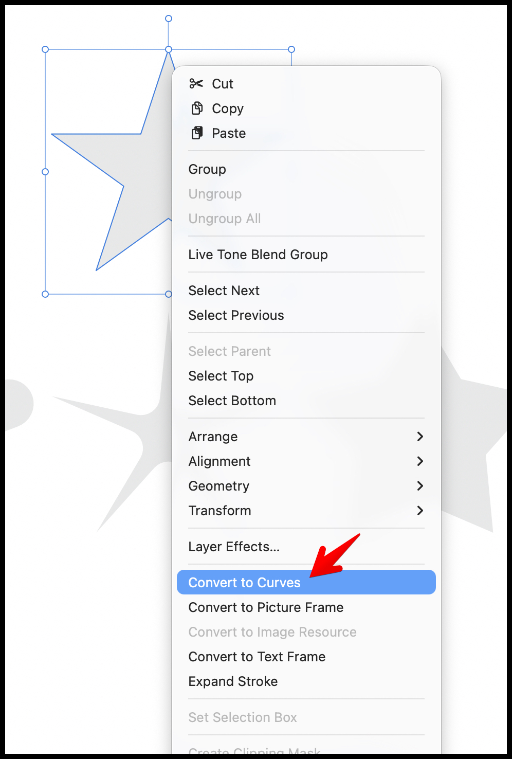 - 기본 도형의 정해진 틀을 벗어나 개별 앵커 포인트(점)를 직접 자유롭게 편집하고 싶다면, 해당 도형을 우클릭하거나 상단 메뉴를 통해 ‘곡선으로 변환(Convert to Curves)’을 실행해야 합니다.