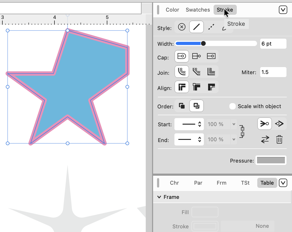 - 도형의 내부를 채우는 색상(Fill)과 외곽선(Stroke)의 색상을 지정합니다. 특히 획(Stroke) 패널에서는 외곽선의 두께(Width), 점선 스타일, 모서리 둥글기 등을 세밀하게 조절하거나 화살표 머리를 추가할 수 있습니다.