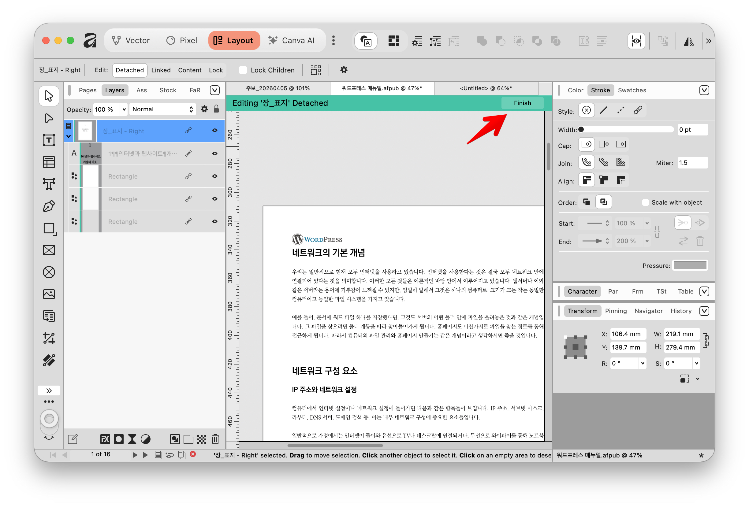 - 앱 상단의 아이콘을 클릭하여 문서 편집에 최적화된 **레이아웃 스튜디오(Layout Studio)**로 이동합니다.